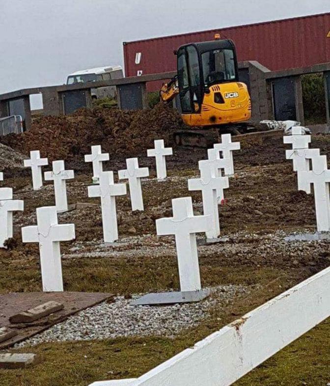 El alerta llegó en la tarde del domingo casi en forma de súplica por parte de la presidenta de la Asociación de Familiares de Caídos en Malvinas, María Fernanda Araujo, quien avisaba a sus contactos acerca de la difusión de imágenes que muestran las tareas que se están desarrollando en estos días en el cementerio de Darwin, donde de las 237 tumbas existentes 123 corresponden a combatientes cuyos cuerpos no están identificados.