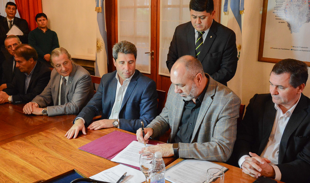 Posterior a las palabras del gobernador se llevó a cabo la firma de los contratos con las empresas que tendrán a su cargo la provisión de los elementos para la obra. Las mismas fueron CIMET S.A., Torres Americanas S.A. y Guzman Nacich.