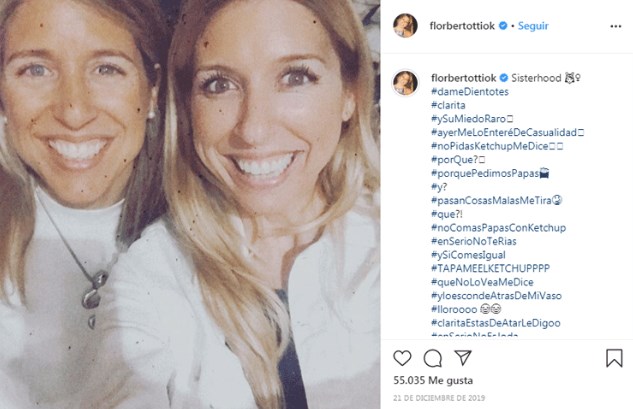 Florencia Bertotti aclaró que le preguntó a su hermana qué tipo de cosas pasaban pero ella no le supo responder. “Cuestión, familia de locas. Clarita te amo”, concluyó la actriz en la publicación.