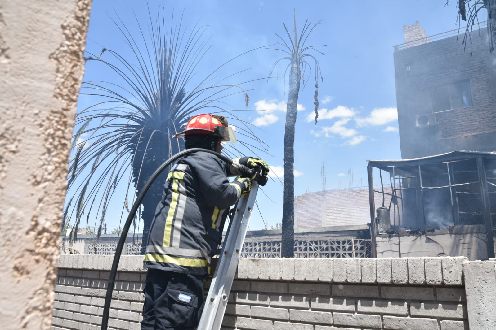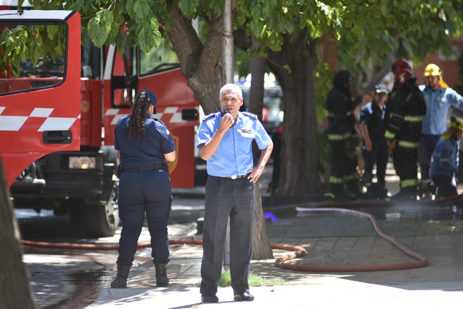 Un voraz incendio se apoderó de un edificio donde funciona un taller de confección de camperas y también hay departamentos residenciales, ubicado en calle Maipú entre Tucumán y Avenida Rioja -departamento Capital- y que demandó un gran esfuerzo de personal de Bomberos para poder ser controlado, antes que se siguiera expandiendo.