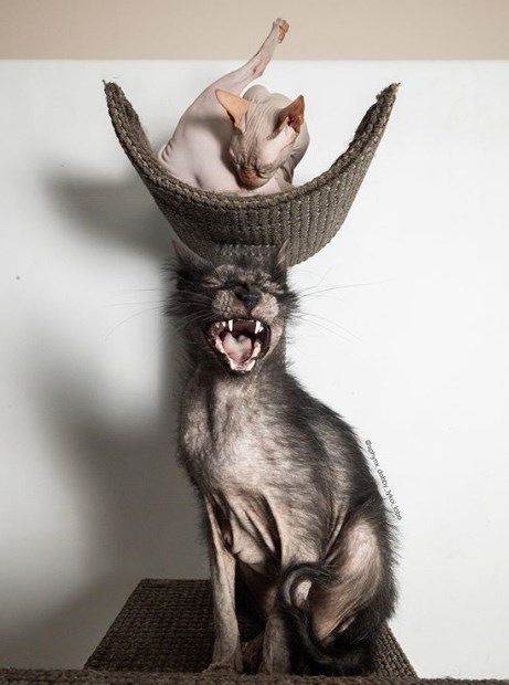 El pelaje de esta raza, registrada oficialmente en 2012, no llega a desarrollarse en su plenitud, como en la mayoría de felinos, escaseando en ciertas partes del cuerpo, lo que le confiere un aspecto amenazador por mutación natural. La dueña de este gato de dos años oriundo de Sudáfrica, Talana Potgieter, organizó una sesión de fotos para mostrarle a todo el mundo que su querida mascota tiene una personalidad única, más allá de su aspecto licantrópico.