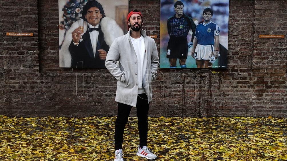 Pero no solamente hizo cuadros para esta exposición, también sus manos dejaron plasmados a Diego en un lugar a donde sus fieles se acercan cada día: el santuario de Argentinos Juniors."La gente de Argentinos Juniors vio el trabajo y un cuadro que hice y salió en PH, el programa de Telefe, y me llamaron para hacer la imagen del santuario. De golpe todo el mundo estaba atrás de mi persona", detalló.