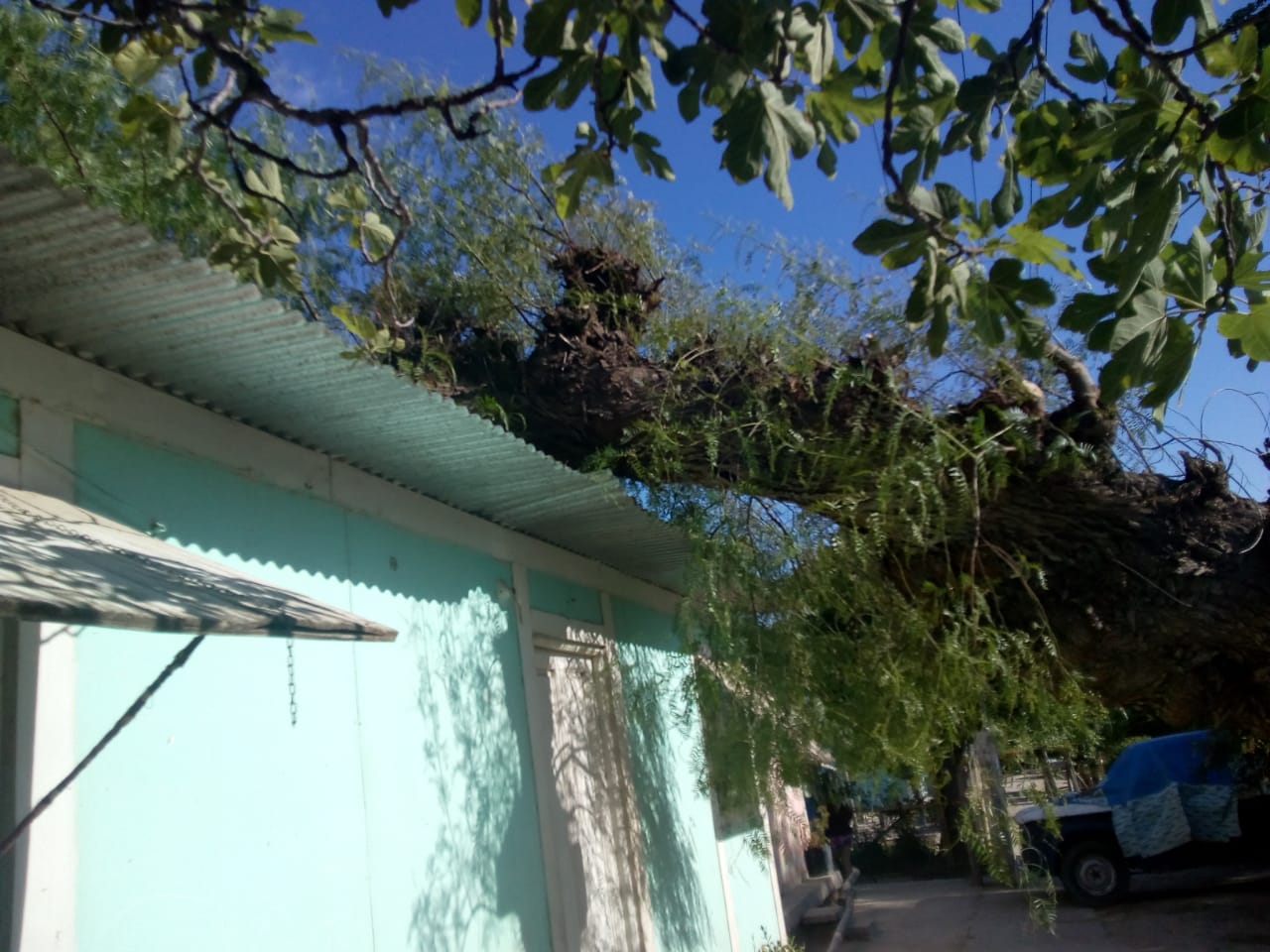 Este miércoles por la mañana, un árbol de gran porte cayó y asustó a una familia de Caucete, que vio como una rama empezó a destruir el techo de su vivienda. Afortunadamente el siniestro no pasó a mayores y no hubo que lamentar heridos.