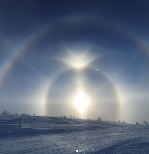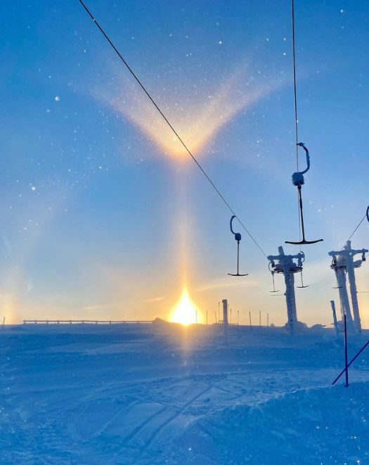 Este domingo, visitantes de la estación de esquí de Tandadalen, en la provincia sueca de Dalama, al sur del país, fueron testigos de un sorprendente fenómeno natural en el que pudieron observar ‘dos soles acompañados de dos arcoíris’.