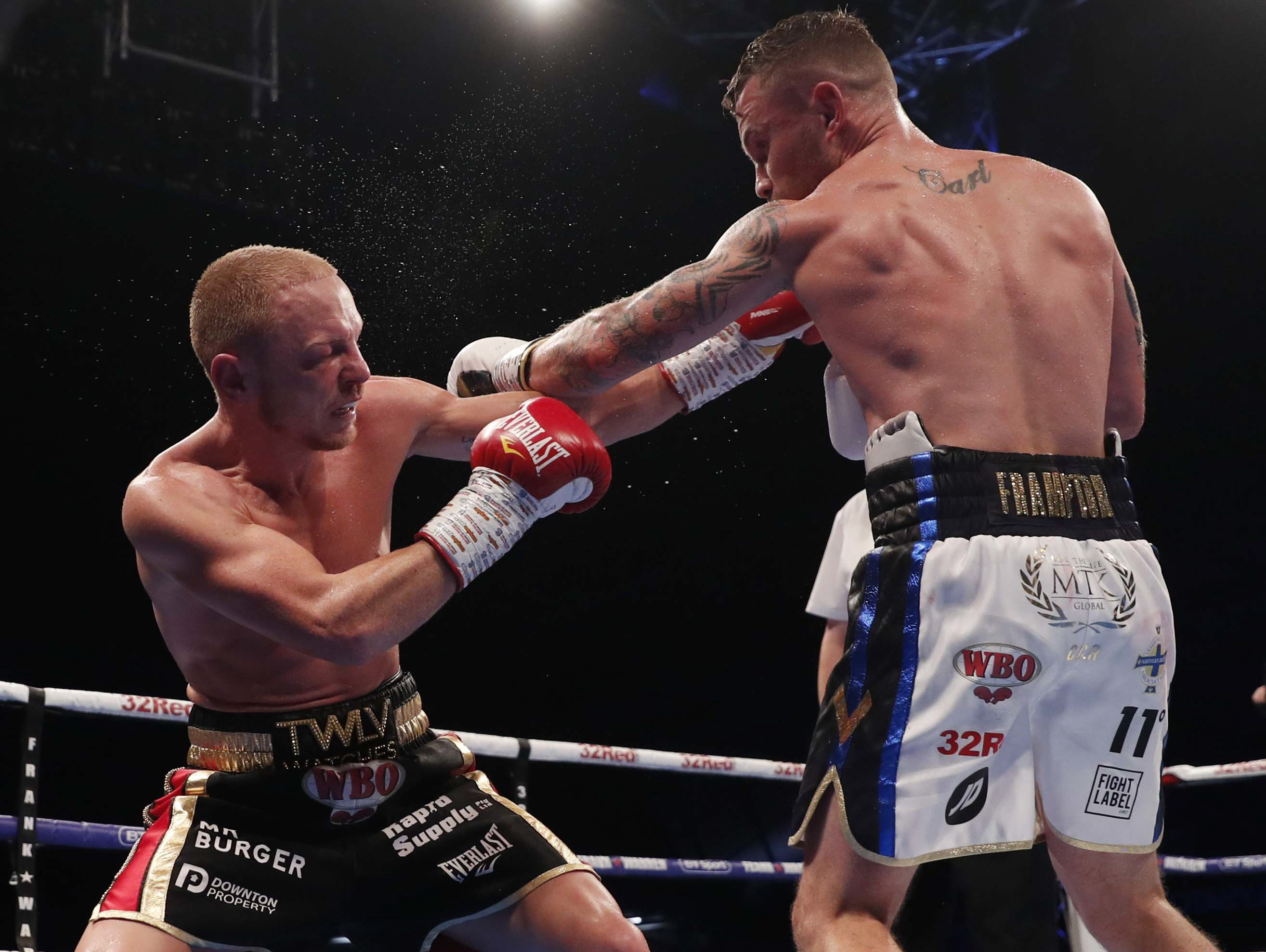 El Campeón Interino Pluma avalado por la Organización Mundial de Boxeo (OMB), el irlandés Carl "El Chacal" Frampton (25-1-0, 14 KO), hizo la primera exposición de su corona con una paliza que se tradujo en victoria por nocaut técnico, en el noveno round, sobre el aguerrido contendor australiano Luke Jackson, en el combate estelar de una cartelera que se llevó a cabo este sábado en el Windsor Park, de Belfast, Irlanda del Norte.