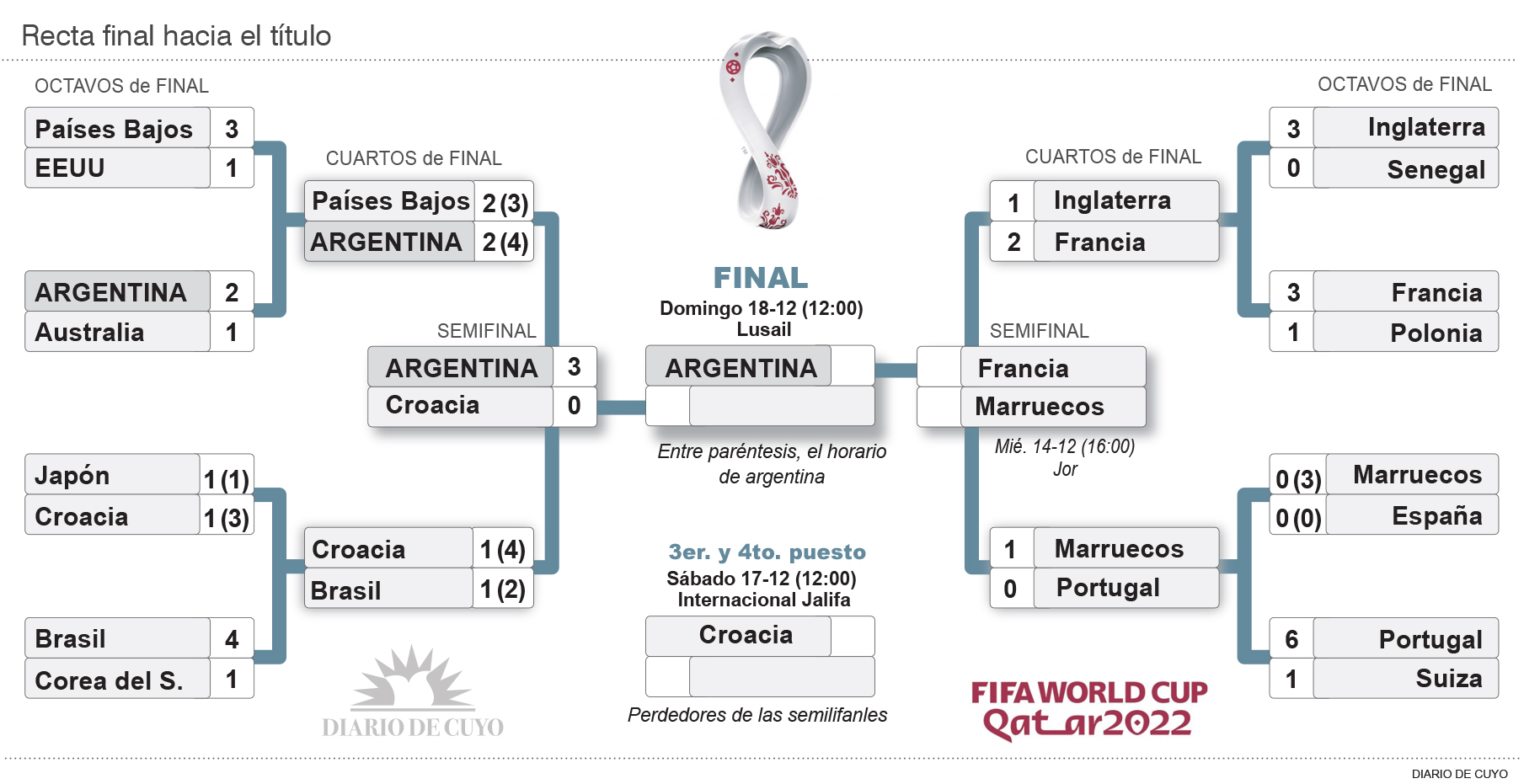 Francia llegó con el rótulo de favorita, pese a que a pocos días del inicio del mundial se lesionaron N’Golo Kante, Presnel Kimpembe, Didier Pogba y, el Balón de Oro, Karim Benzema, y deberá justificar sus intenciones de retener el título, algo que no se da hace 60 años cuando Brasil lo consiguió en Suecia 1958 y Chile 1962.