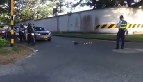 Una increíble escena que se registró en una calle de Santiago de Cali, Colombia, se volvió viral en las redes sociales.