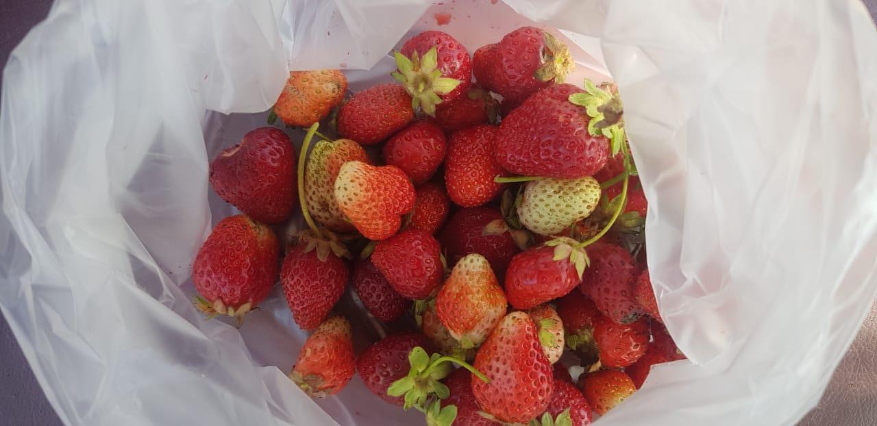 Almendros, nogales, membrillos, chacras de todo tipo, como tomates, pimientos, berenjenas, y… ahora frutillas.