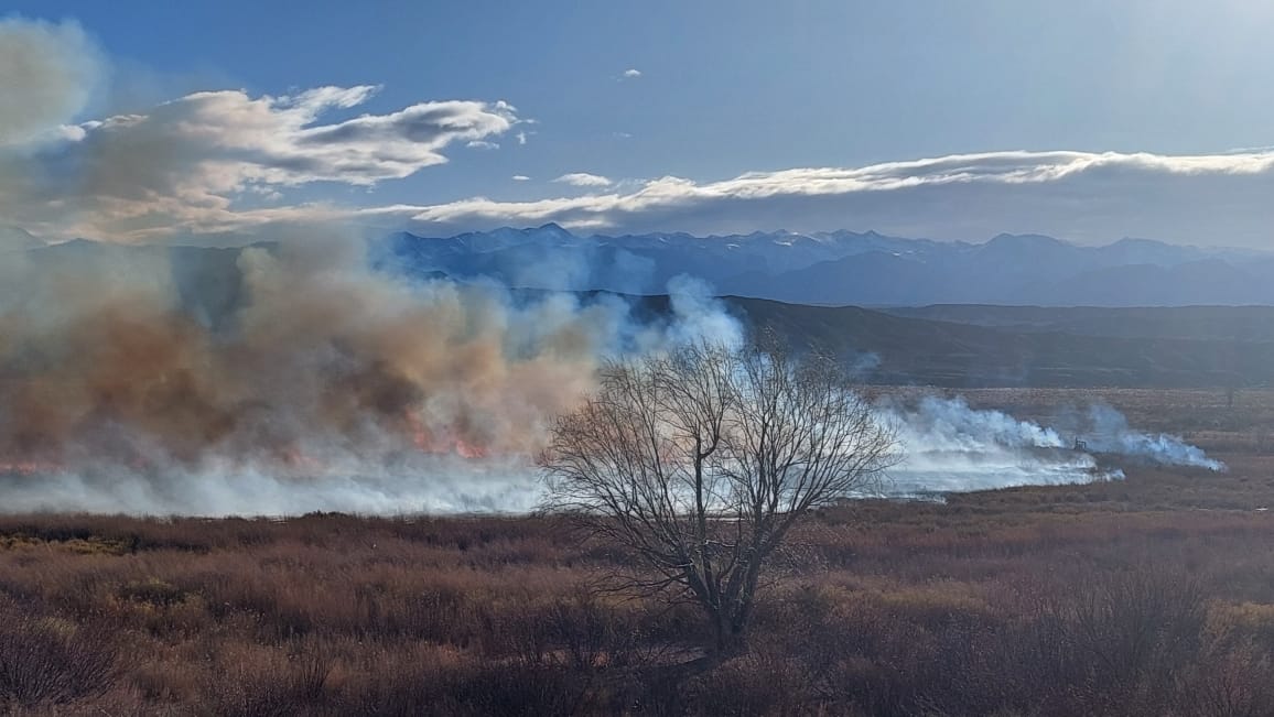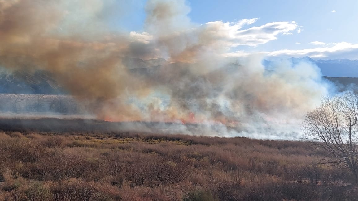 Este sábado en la tarde, las llamas avanzaron sobre los pastizales que rodean las Ruinas de Hilario, en Calingasta. Según las fuentes, el incendio de grandes magnitudes se veía a varios kilómetros desde la ruta 149.