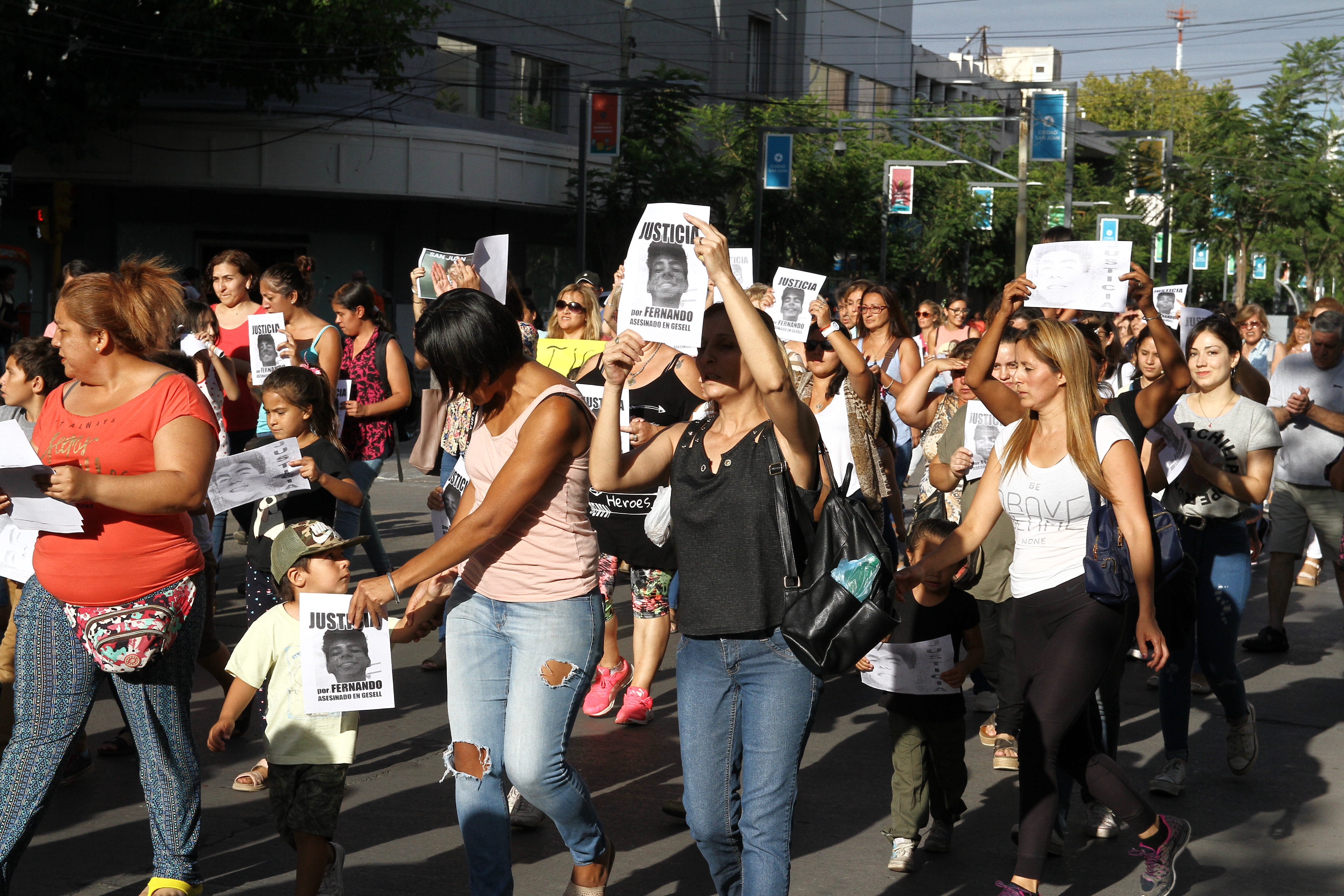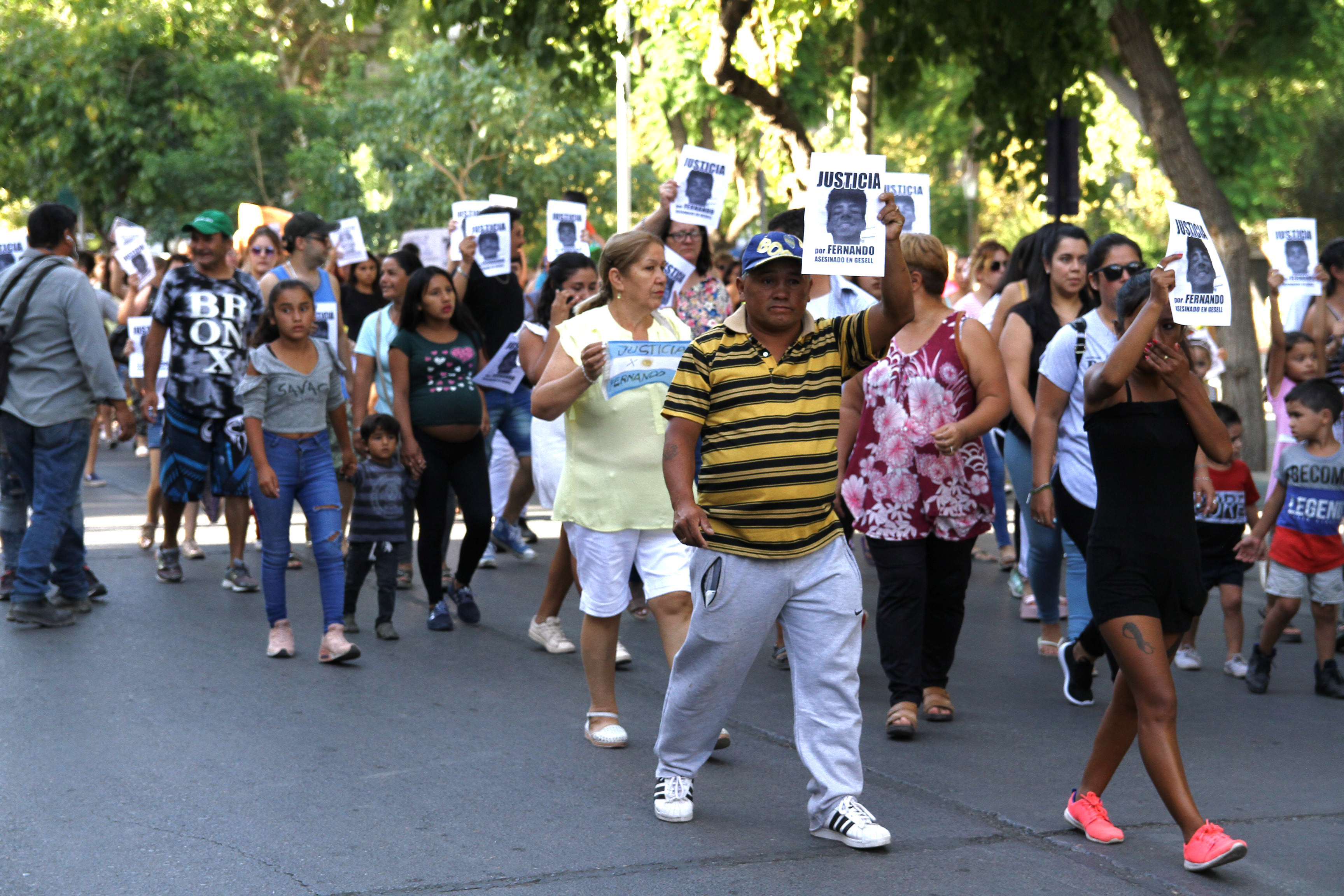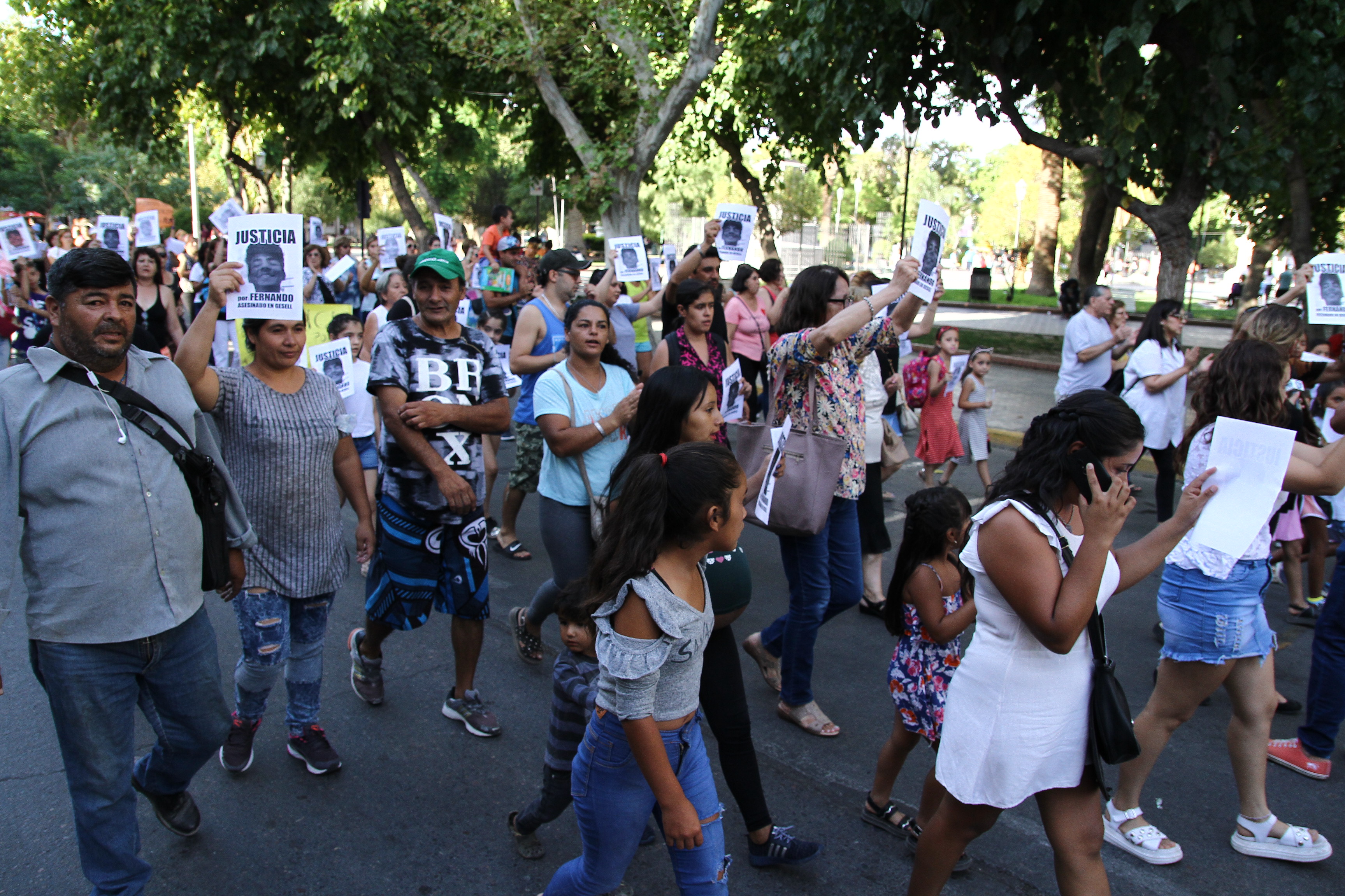 Fueron unas 200 las personas que le hicieron frente a la calurosa tarde sanjuanina y marcharon por el perímetro de la Plaza 25 de Mayo. La palabra justicia se multiplicó en cada metro recorrido y los distintos carteles hicieron sentir el malestar y la conmoción de la sociedad por el terrible asesinato.
