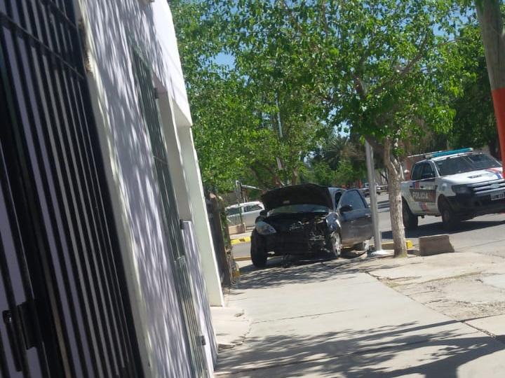 Este domingo pasado el mediodía, un auto y una camioneta impactaron en la esquina de Urquiza y Porres, en Chimbas. Por el choque, el Ford Ka quedó sobre la vereda de la zona mientras que el rodado más grande quedó dado vuelta y los uniformados tuvieron que romper una puerta para poder sacar a los ocupantes que habían quedado encerrados.