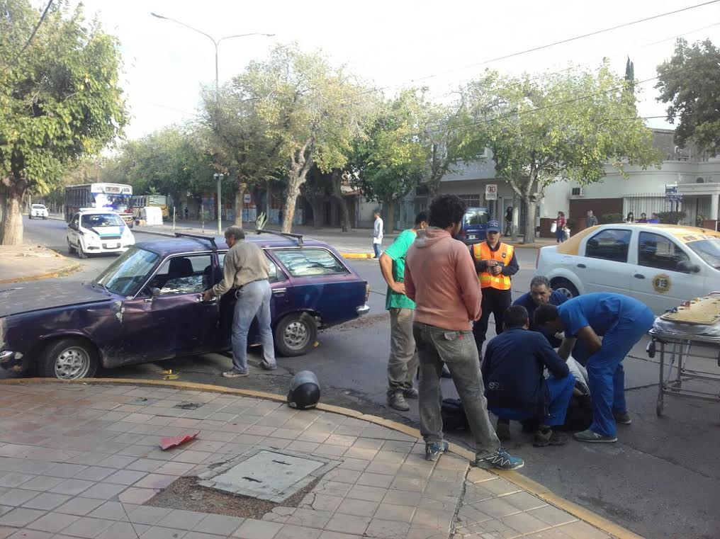 Durante la mañana de hoy se produjo un fuerte choque entre una moto y un auto, en el cruce de avenidas Rawson y Libertador, en Capital. Por el hecho, el conductor del rodado menor tuvo que ser trasladado al servicio de Urgencia del Hospital Rawson, donde tuvo que ser atendido por golpes y raspones.