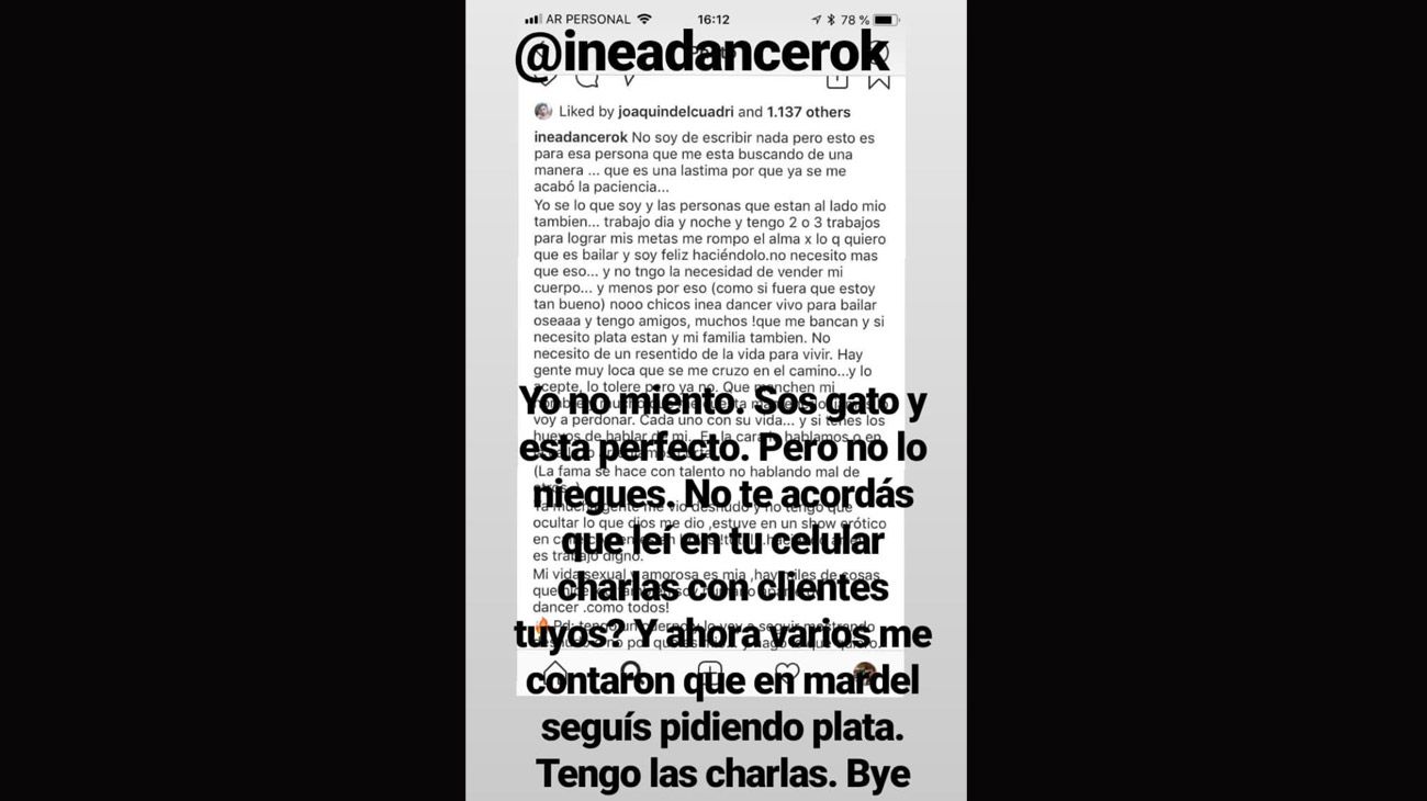 Además de la traición, el bailarín utilizó la propia cama de su ex pareja para promocionarse y venderse en la red social, y éste se hizo eco de la situación muy angustiado. “Son mis sábanas, pero no soy yo”, comentó, junto a la imagen del muchacho desnudo.