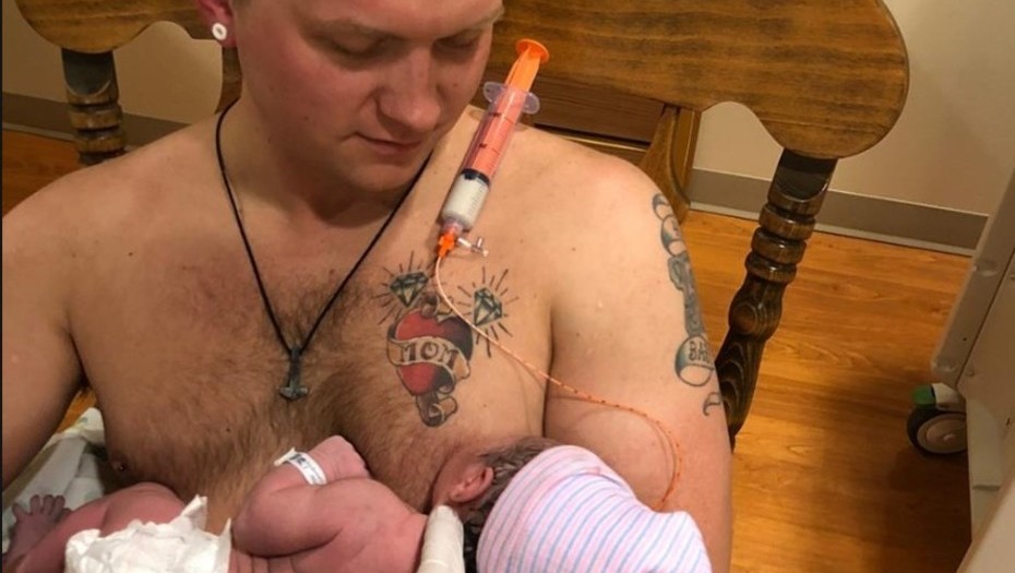Fue así que la enfermera unió un protector de pezones de plástico con un tubo que estaba conectado a una jeringa llena de leche de fórmula en el pecho de Maxamillian.