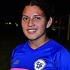 El futuro ya llegó. Es jugadora de Palermo Sport club, tiene 16 años. Es delantera y obtuvo el botín de oro como goleadora del torneo y representó a la provincia en los Juegos Binacionales en Rancagua, Chile.