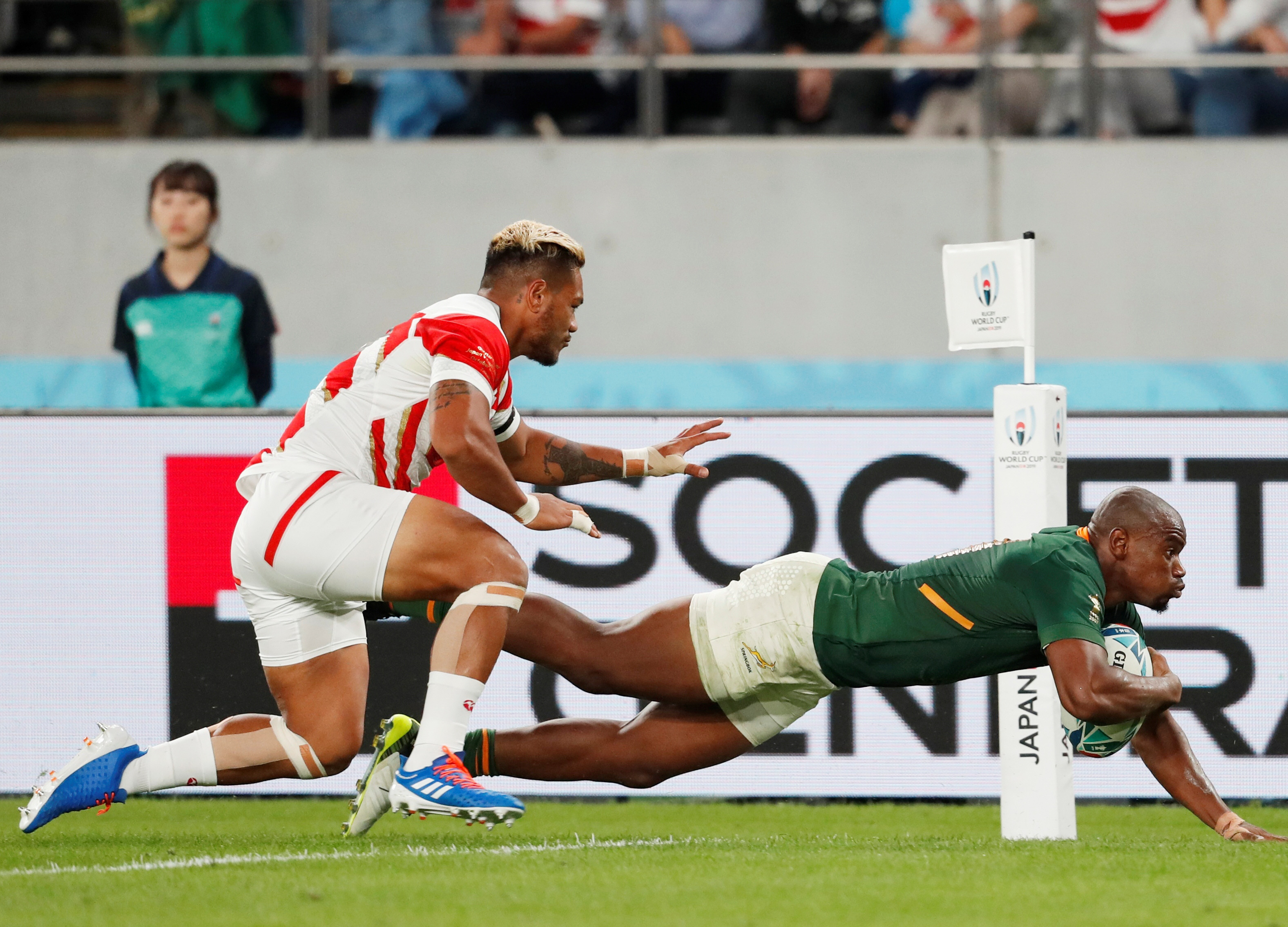 Los Springboks, que buscan un tercer título tras los de 1995 y 2007, son el primer equipo en derrotar al cuadro nipón, que había alcanzado los cuartos de final por primera vez en su historia merced a sus cuatro victorias en la fase de grupos. A pesar del apoyo del Tokio Stadium (50.000 espectadores), los Brave Blossoms cedieron ante la potencia de los sudafricanos, que anotaron tres tries, dos de ellos obra de Makazole Mapimpi.