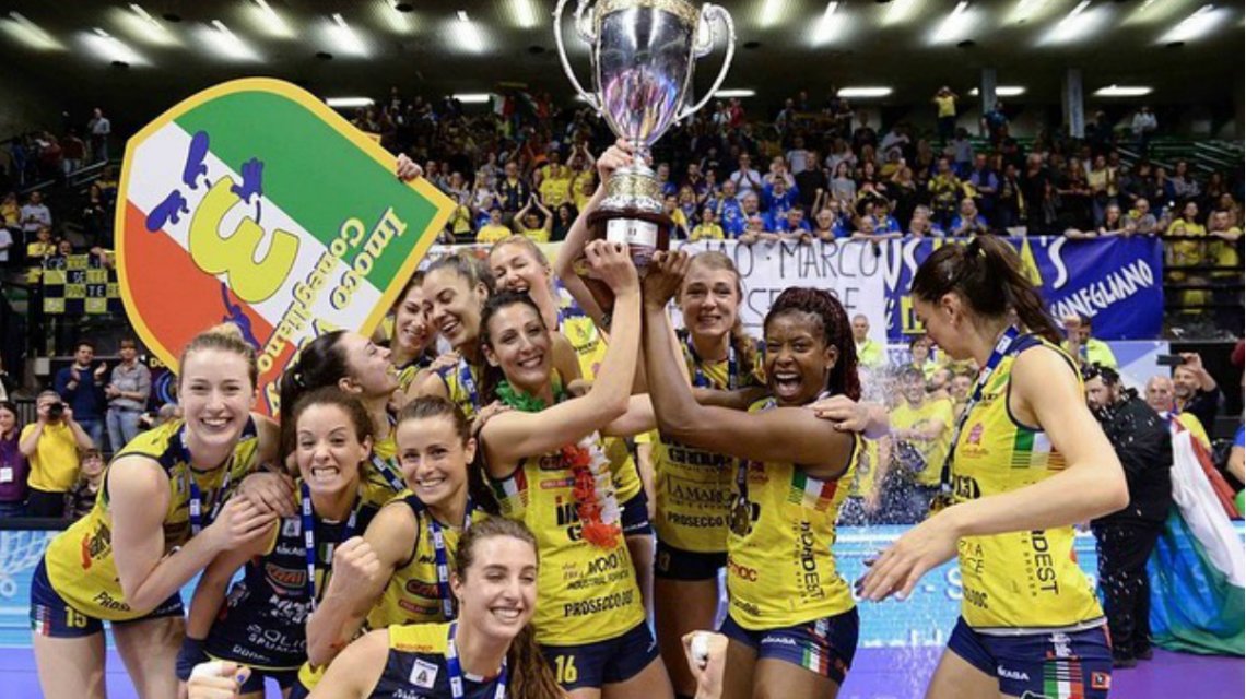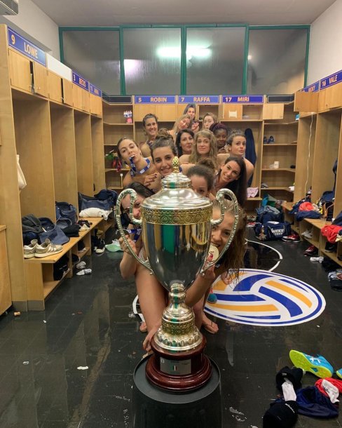 Un equipo de vóley de la liga italiana femenina llamó la atención por un particular festejo tras consagrarse campeonas de la SerieA1. Las jugadoras del Imoco Volley de Conegliano decidió celebrar en el vestuario totalmente desnudas y con la copa en mano.