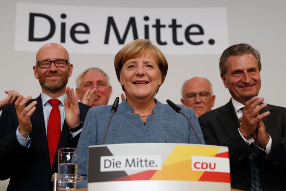 La canciller alemana Angela Merkel celebró este domingo "el encargo de formar gobierno" que recibió en las urnas, pero reconoció que su partido conservador esperaba "un resultado un poco mejor", luego que las proyecciones iniciales le dieran la primera minoría del parlamento federal con un 33,5%, lejos de la mayoría que necesita para gobernar sola.