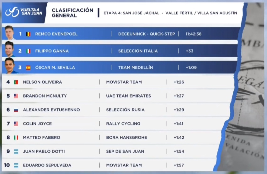 La séptima victoria del colombiano en San Juan fue con un tiempo de 4 horas, 8 minutos y 3 segundos. Si bien no alcanzó para desbancar al líder de la clasificación general, Remco Evenepoel, sirvió para demostrar una vez más por qué es catalogado como uno de los mejores embaladores del mundo.