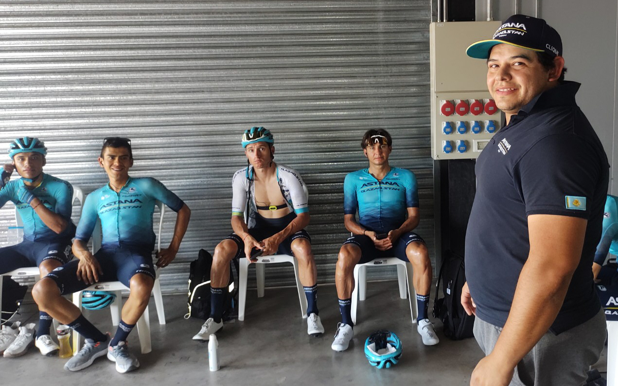En esta ocasión es el Astana-Qazastan, equipo World Tour kazajo, es quien lo contrató. "Somos tres los masajistas, yo trabajo con Harold Tejada (colombiano) y Harold López (ecuatoriano)", contó quien dice que lo tratan como uno más.