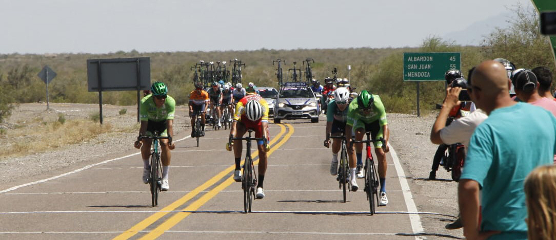 El pelotón de arriba mantenía un distancia importante pero cada vez menor. Como en la subida se habían quedado Bennett (BORA-hansgroe), que portaba la malla líder y otros velocistas, fueron los hombres del Movistar, el portorriqueño Abner González y el brasileño Vinicius Rangel, los que, de cabeza, neutralizaron a los fugados, en plena Cuesta de los Ratones. Quedaron 47 arriba, pasaron todos juntos por la Villa de Calingasta y Tamberías, y juntos embalaron. Y, en ese metier, Gaviria tenía todas las fichas ganadoras.