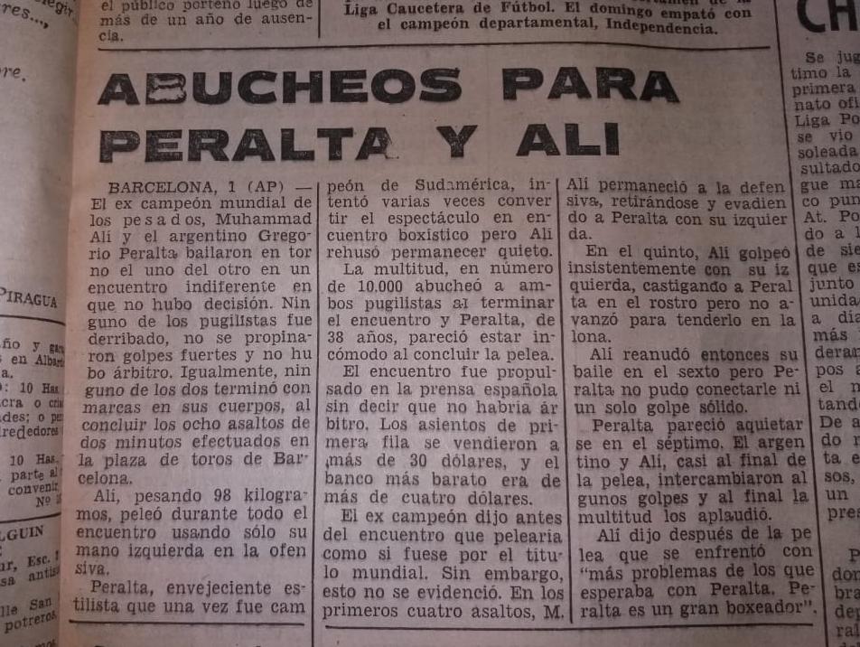 Un 1 de agosto de 1972, el sanjuanino Gregorio "Goyo" Peralta protagonizó un combate que el mundo del boxeo recuerda permanentemente porque el rival fue nada más ni nada menos que Muhammad Alí, considerado como uno de los mejores pujiistas de todos los tiempos.