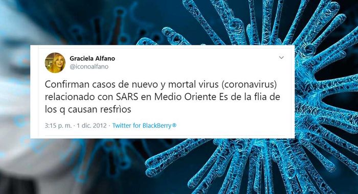 Hoy ya no existe persona en el mundo que no sepa sobre el coronavirus, la enfermedad que se convirtió en pandemia y que pone en vilo a todo el planeta. Sin embargo, hace ocho años Graciela Alfano la nombró por primera vez y anunció su peligrosidad en su cuenta de Twitter.
