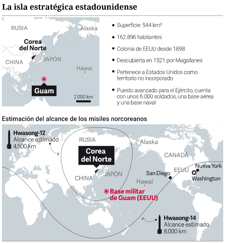 Los residentes de la pequeña isla de Guam, tienen miedo ante la amenaza que supone la descontrolada retórica bélica y explosiva de dos líderes poco confiables a la hora de la diplomacia: el norteamericano Donald Trump y el líder norcoreano Kim Jong Un.