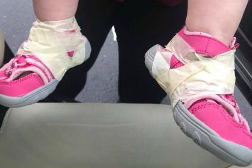 El enojo se debió a que a la nena le habían colocado cinta adhesiva en los pies para que no se le salieran las zapatillas.