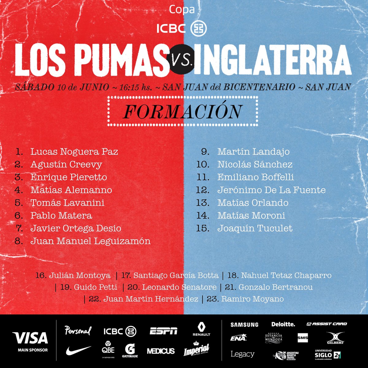 En cuanto a los backs, tras lo que fue el último partido ante el Seleccionado de la Rosa, recuperan la titularidad la pareja de medios: Martín Landajo y Nicolás Sánchez, el fullback Joaquín Tuculet y Jerónimo De la Fuente, además del mencionado debut de Boffelli.