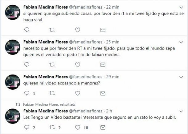 “Les tengo un vídeo bastante interesante que seguro en un rato lo voy a subir. ¿Quieren mi video acosando a menores?”, afirmaron en los mensajes.