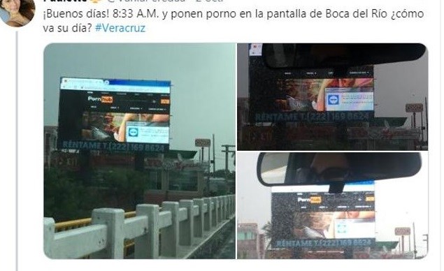 Conductores y acompañantes de vehículos se vieron sorprendidos en horas de la mañana por un cartel en la autopista que exhibía videos pornográficos. El hecho ocurrió en una pantalla gigante publicitaria del estado de Veracruz, en México.