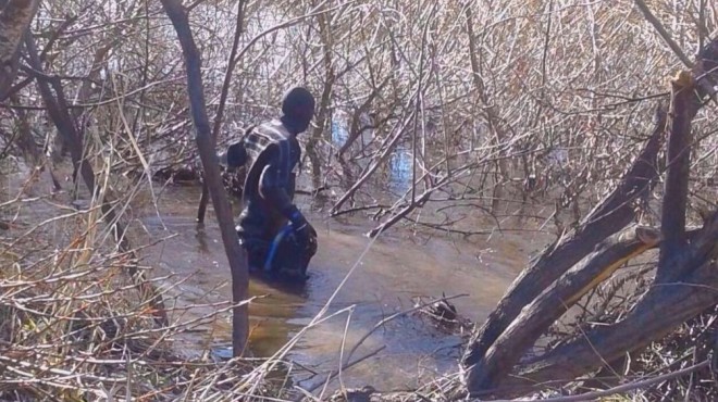 El rastrillaje se hizo, según fuentes de la investigación, en un tramo del río Chubut ubicado dentro del Pu Lof Cushamen que nunca había sido rastrillado hasta el momento.