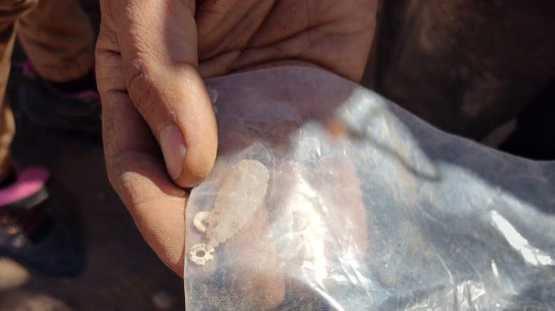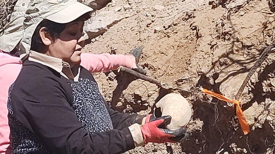 Parte de un cráneo, fémur, húmero, radio, cúbito y algunos huesos de mano y pie entre otros fueron los restos óseos que ayer viernes un maquinista ‘encontró’ en el camino que hacía mantenimiento a la mina El Pachón, Calingasta.