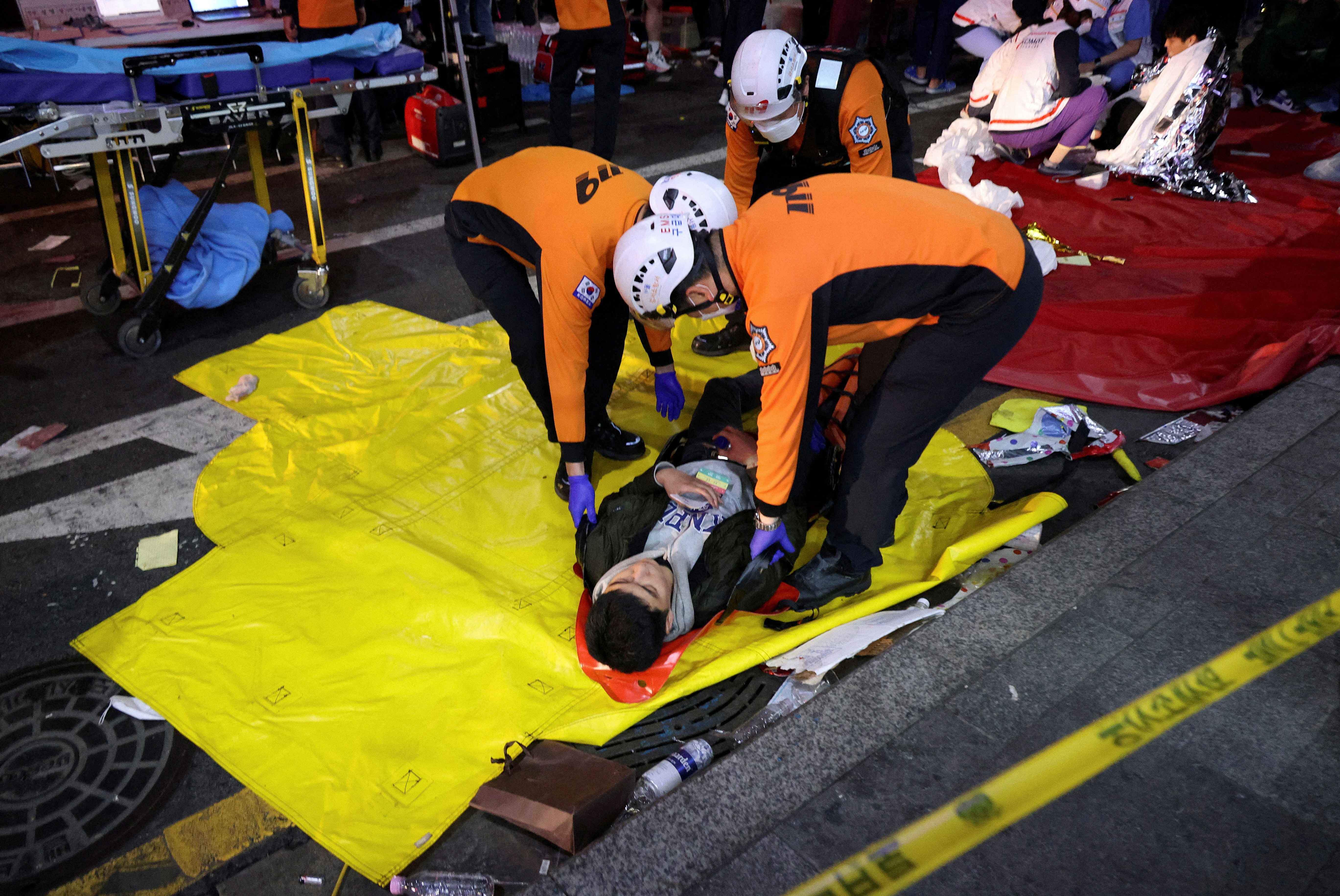 "El elevado número de víctimas se debió a que muchos fueron pisoteados durante el evento de Halloween", dijeron los bomberos refiriéndose a la multitud que se abalanzó hacia un callejón estrecho e inclinado.