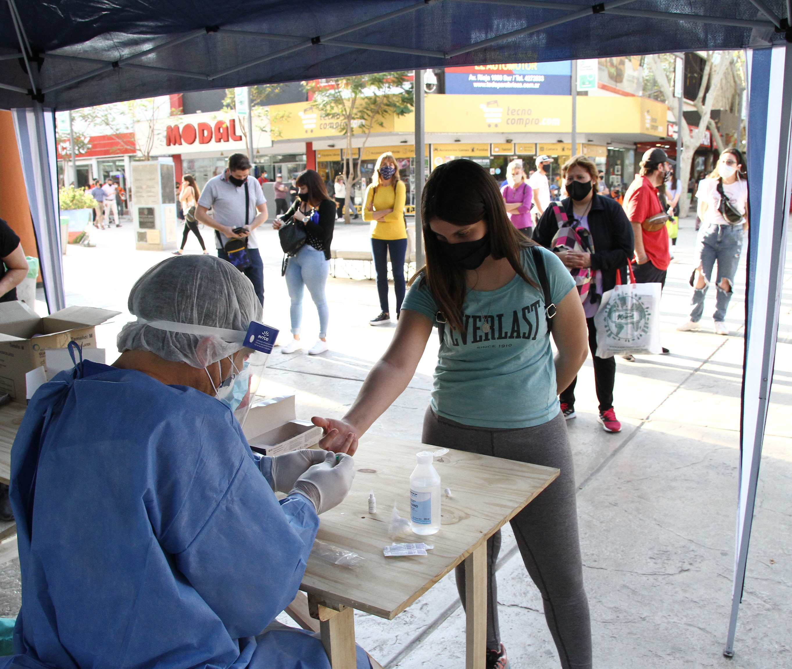 Las pruebas serológicas comenzaron a realizarse en las peatonales Rivadavia y Tucumán, pero ante la cantidad de personas interesadas decidieron cambiar. Así, se desplazaron a Tucumán entre Laprida y Libertador, que si bien era más amplio obligó a cortar el tránsito.
