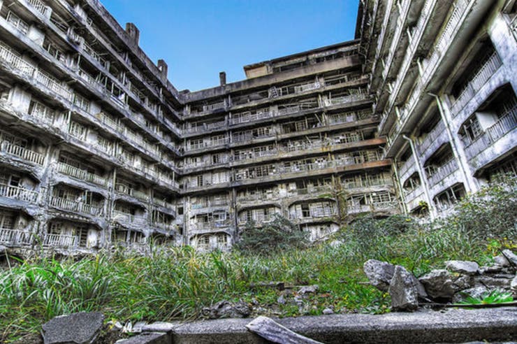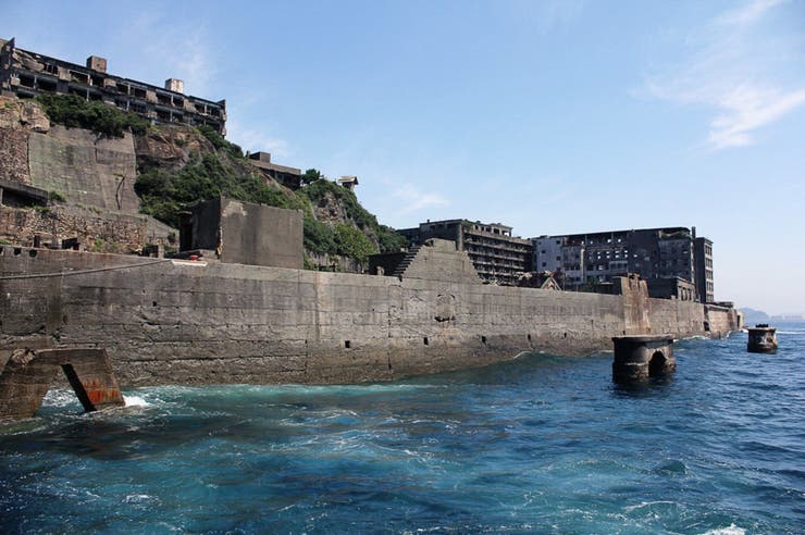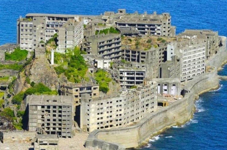Por sus potentes murallas, la isla, que hoy es un lugar fantasma, fue llamada Gunkanjima, o isla acorazada, pero también, "la isla sin verde", por la escasa cantidad de césped en un lugar copado por el hormigón.