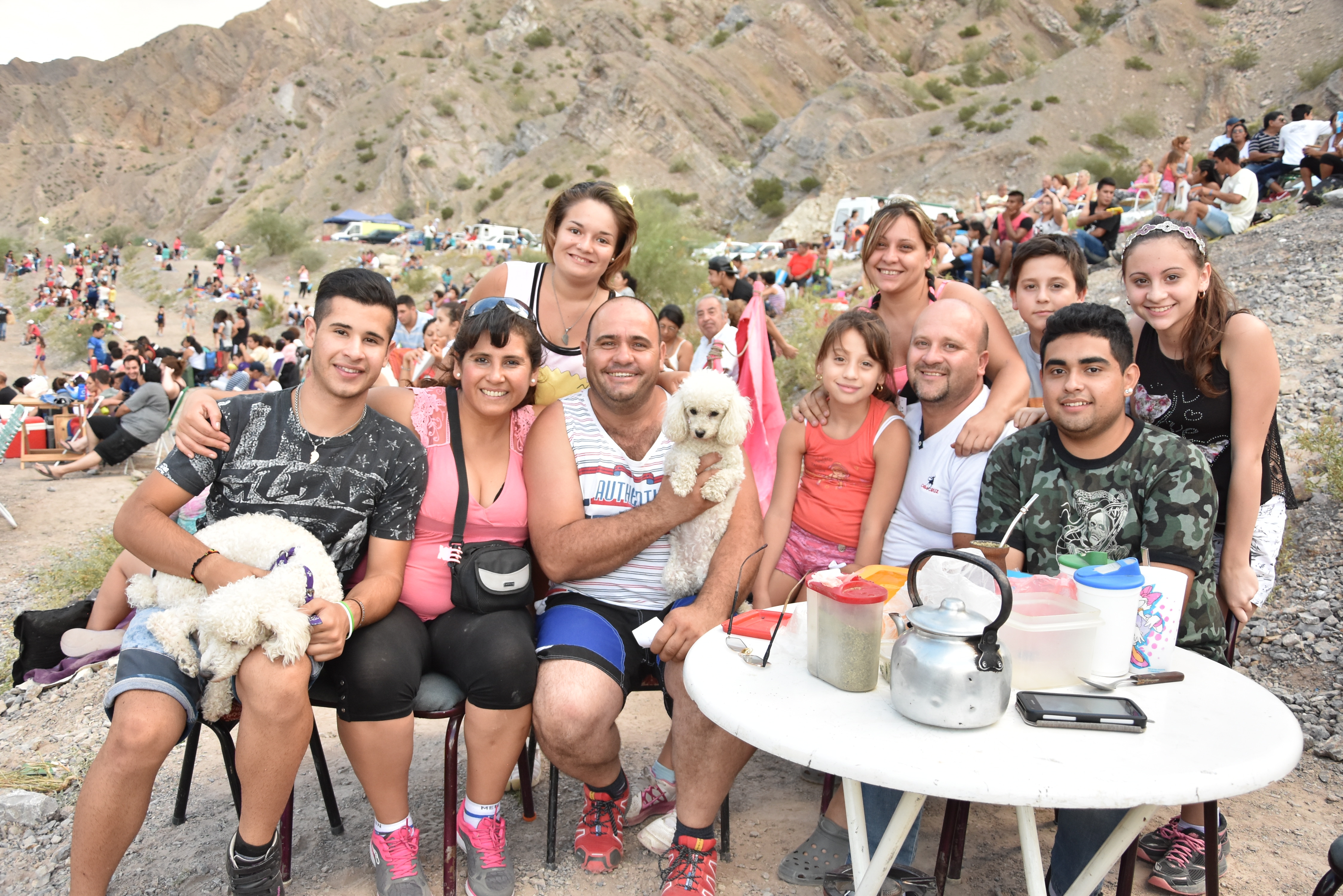El clan, oriundo de Rawson, llegó al lugar a las 15.30 súper preparados. Es más, se trajeron hasta Barby y Noha, los tiernos caniches que tanto adoran. Conservadoras repletas de comidas y bebidas, reposeras, una mesa y cartas para pasar el rato son sólo algunas de las cosas que cargaron en los dos vehículos que los llevaron hasta el lugar para que no les falte nada.