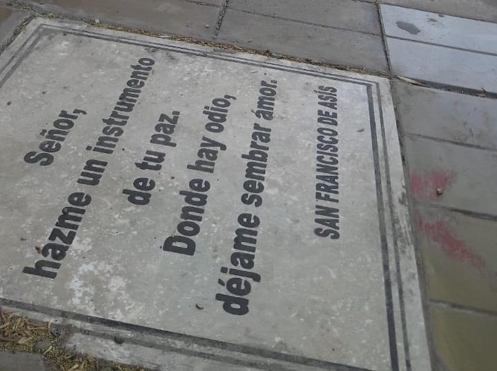 Desde hace algunas semanas observo algunos grandes mosaicos con leyendas que nos llevan a la reflexión. Están siendo colocadas en algunas veredas de la ciudad de San Juan y creo que es el municipio el que está encargado de esta tarea. Realmente me sorprendió porque son leyendas firmadas por sus autores, como San Francisco de Asís (foto), Domingo Faustino Sarmiento, Martin Luther King, entre otros. Escuché por ahí que una palabra de fe puede cambiarle la vida a una persona. Por eso motivo, felicito a quienes están llevando a cabo esta obra que enriquece el alma de todos los ciudadanos y de los visitantes que llegan a nuestra provincia.