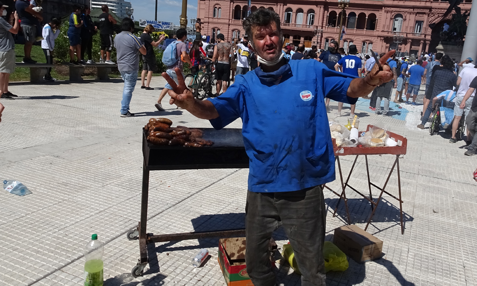vino solo y no anduvo con vueltas, instaló su puesto de choripanes en medio de la plaza. “El