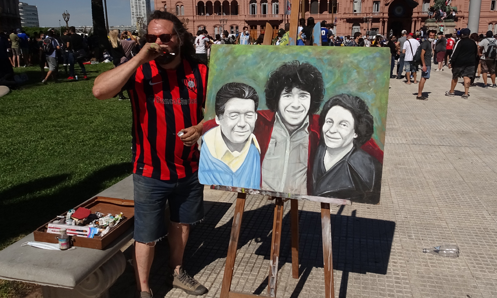del ídolo yendo a pintar un cuadro de Maradona, Don Diego y Doña Tota en la misma