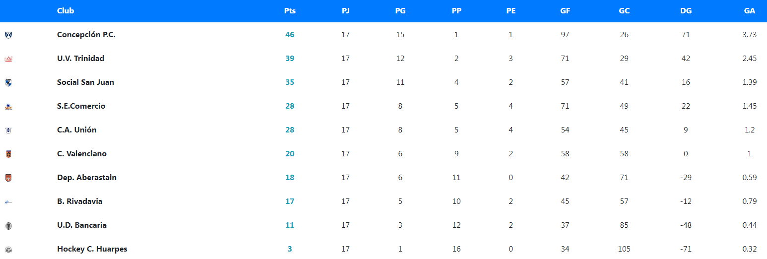 Concepción sigue firme arriba y UVT le sacó más ventaja a Social San Juan. Ese es el saldo de la fecha 17° del Apertura de hockey sobre patines femenino, que se jugó íntegramente en la noche del jueves.
