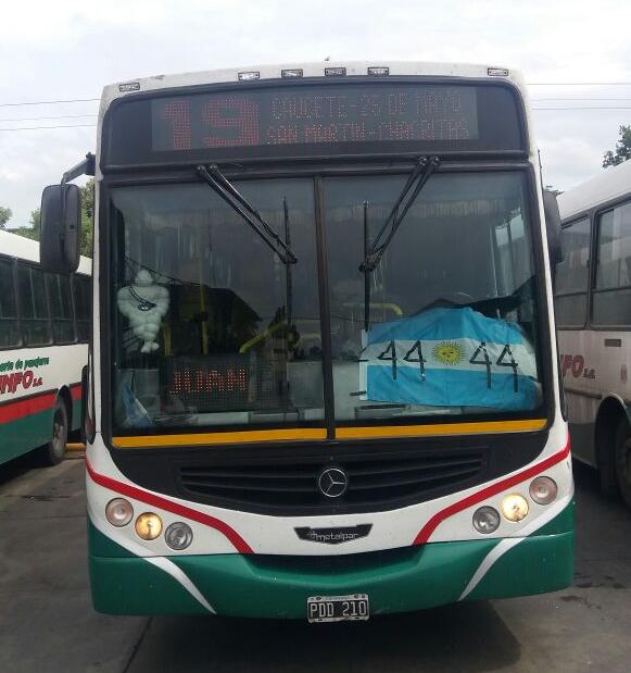 Juan Césped, un chofer de colectivos sanjuanino decidió rendir homenaje a los 44 tripulantes del desaparecido submarino ARA San Juan. Para eso, colocó una Bandera Argentina con el número equivalente a la cantidad de hombre en el parabrisas del micro que maneja.