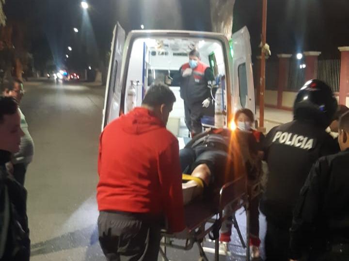 Al conductor de la moto se le inmovilizó una pierna, antes de ser subido a la ambulancia.