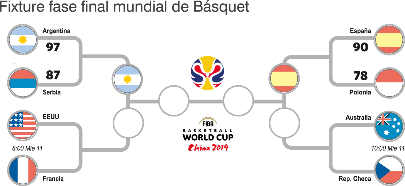 Por otra parte, España, invicto en el certamen, derrotó con facilidad a Polonia por 90 a 78 en Shanghai y también está en semifinales. Su rival saldrá hoy y será el ganador de Australia-República Checa (a las 10).