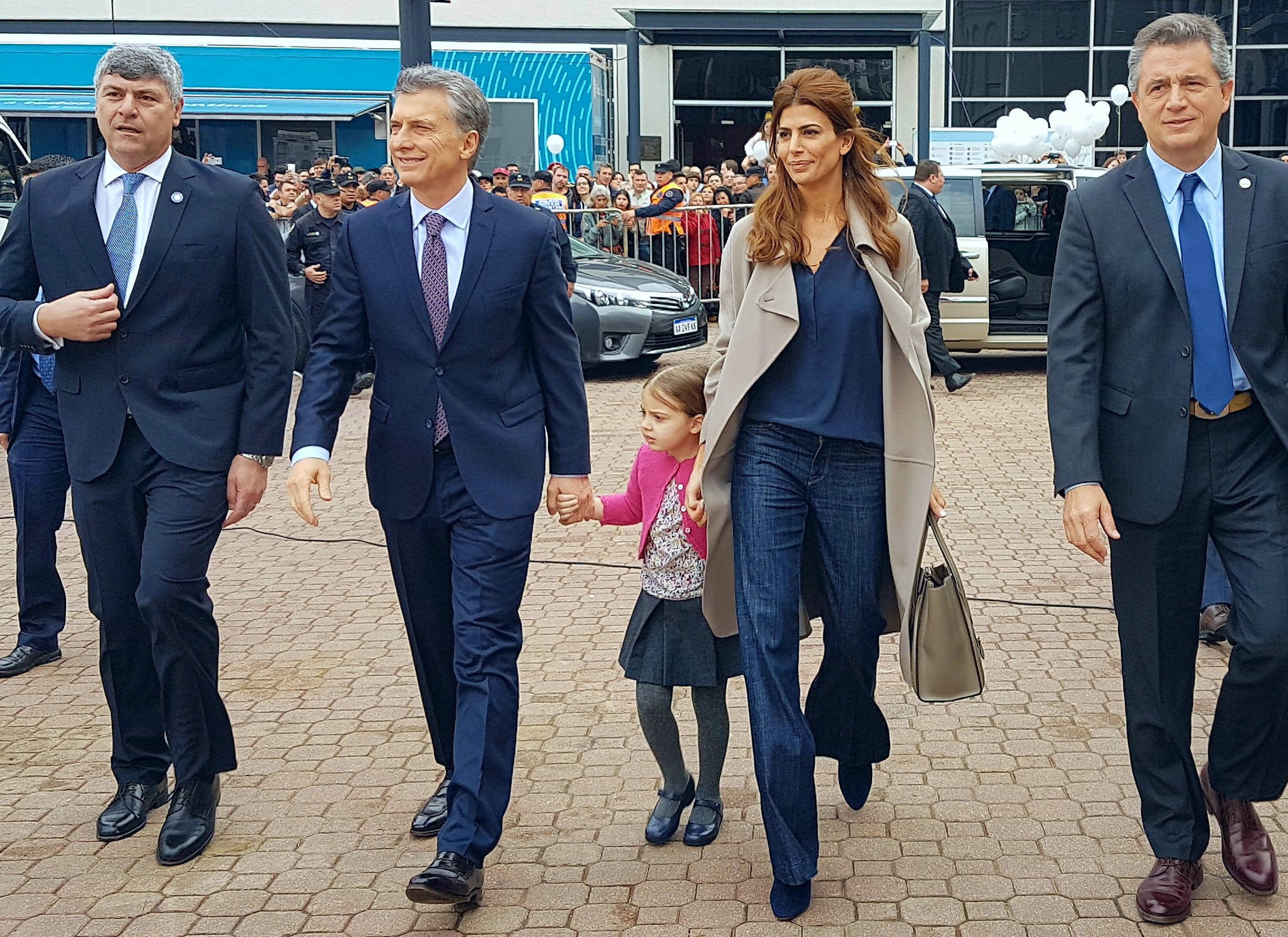 En familia. Como es ya una costumbre, el presidente Mauricio Macri hace sus presentaciones oficiales acompañado de su esposa, Juliana Awada y su pequeña hija, Antonia.