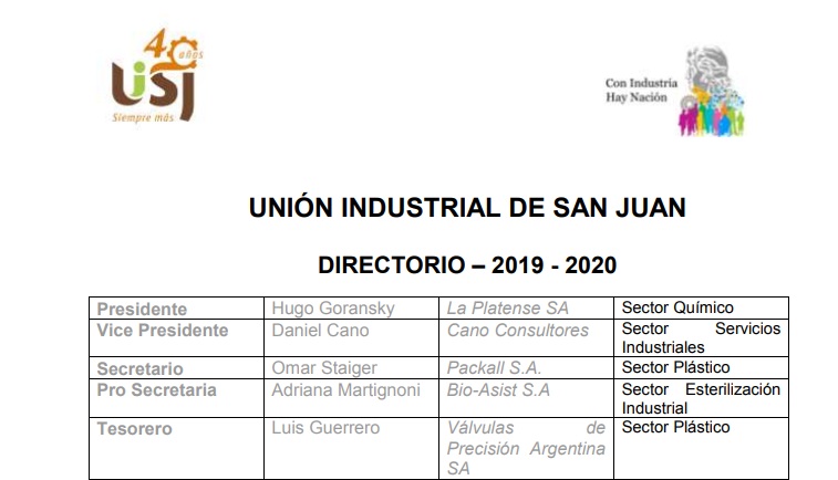 El directorio que estará al mando de la entidad indsutrial está compuesto, además de Goransky, por el vicepresidente Daniel Cano, el secretario Omar Staiger, la pro secretaria Adriana Martignoni y el tesorero Luis Guerrero.