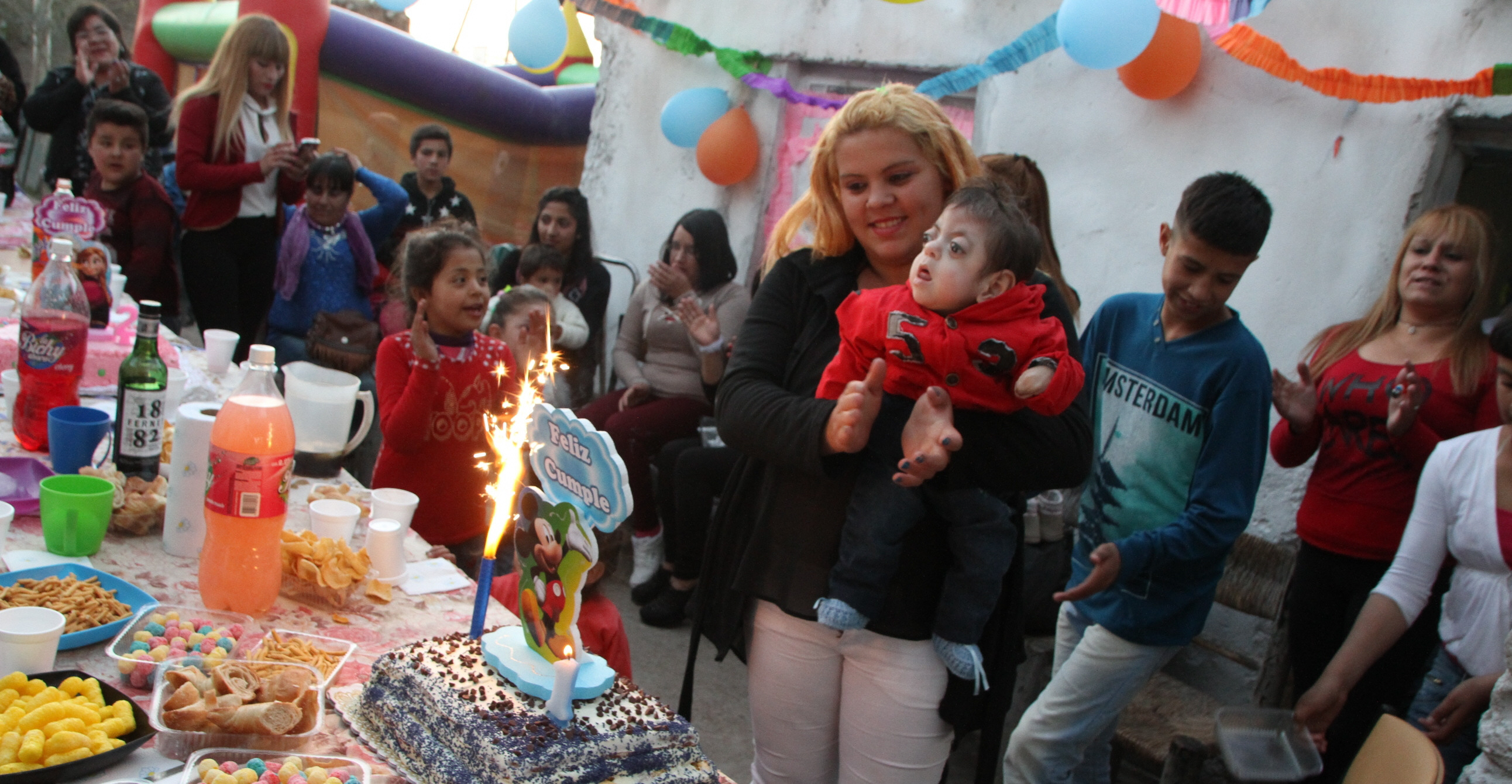 Ian es el tercer hijo de Brenda. Ella vive junto a su marido, que hace changas, y sus tres chicos. No trabaja porque el nene necesita de muchos cuidados, sin embargo aseguró que hace hasta lo imposible para que no les falte nada. Ayer, la casa en la que vive esta familia se vistió de fiesta. Globos en todos los rincones, guirnaldas de muchos colores y hasta un enorme castillo inflable para que los chicos jugaran hicieron que el patio de la vivienda pareciera un salón de juegos. De hecho, hubo momentos, en los que no cabía más nadie en el patio. Es que a pesar de que su familia es muy humilde recibieron a muchas personas con mucho amor y alegría. El feliz cumpleaños se cantó con fuerza y todos abrazaron a la familia del nene y por supuesto a Ian.