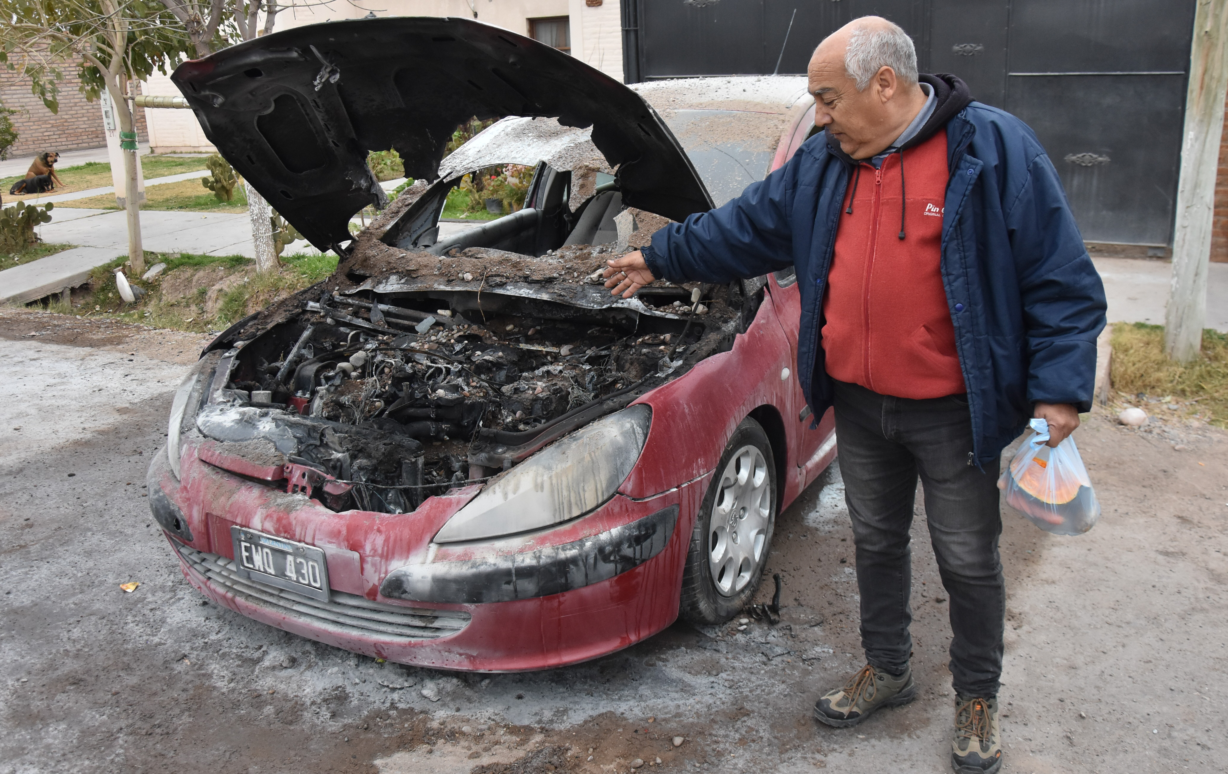 Un hombre de 32 años (prefirió no revelar su identidad) sufrió un costoso accidente al incendiarse su Peugeot 307 en la puerta de su casa. Ocurrió a las 7.50 de ayer, cuando se disponía a viajar a Iglesia. Para eso arrancó el auto y entró unos minutos a su casa del Barrio Lagares, en Pocito. Al salir, descubrió que el vehículo estaba en llamas. Con ayuda de vecinos, la Policía y los Bomberos de Rawson, apagaron el fuego, pero para entonces gran parte del daño ya estaba hecho. Aparentemente todo ocurrió por un cortocircuito en el motor. Hacía sólo 3 meses que lo había comprado. No hubo que lamentar heridos.