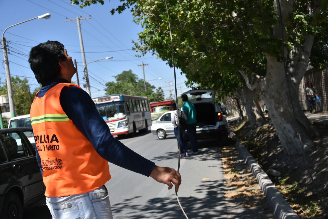 El fuerte viento Zonda que azotó ayer a gran parte de la provincia, dejó ramas y postes caídos. Y este mediodía, un joven lo sufrió en carne propia. Según informaron fuentes policiales, un motociclista de 35 años de edad se trasladaba Rastreador Calívar y Colón, frente al Barrio Natania XV, en Rivadavía, cuando se enganchó con un cable que colgaba sobre la calle.